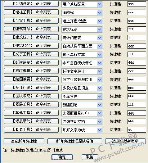 ● 命令快捷键可以动态修改,按“确定”后即时生效。