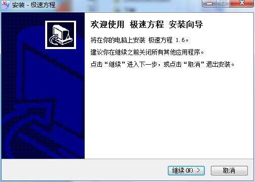 1.在PC下载网下载极速方程官方版安装包,解压后,双击exe程序,进入安装向导,单击继续
