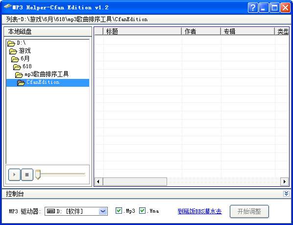 随着mp3播放器的降价,相信很多朋友已经拥有一款心爱的MP3了。现在其功能也越来越多(竟争就是好啊),但是有调整MP3播放器内的歌曲顺序功能的倒是非常少见(反正便宜的MP3上没见到过)。这样就造成MP3内的歌曲一会是交响乐,一会是流行音乐,一会儿又是New Age,想听的歌总是在后面,很不方便,这个软件就是为解决这个问题而编写的,适用于所有内存式Mp3,绿色软件,无需安装。