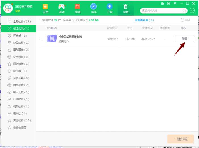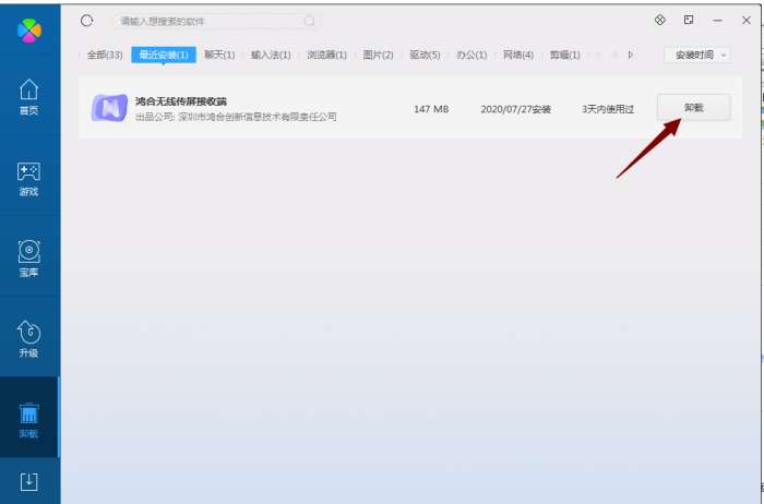 方法二:安装并打开360软件管家,在卸载选项的列表中找到鸿合无线传屏软件,点击卸载即可
