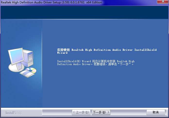 3.双击打开,进入Realtek HD Audio音频驱动软件界面,点击下一步