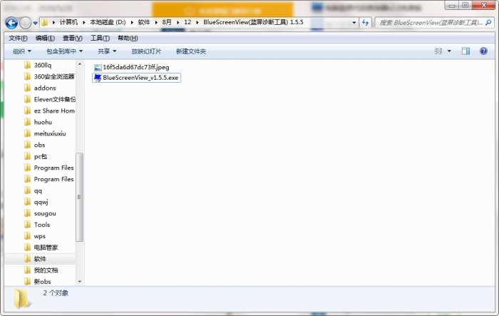 1、双击BlueScreenView.exe,运行蓝屏检测程序。