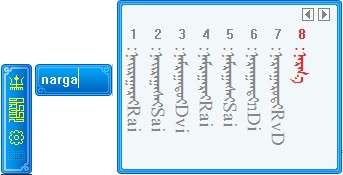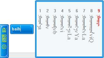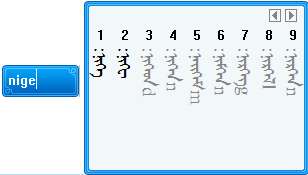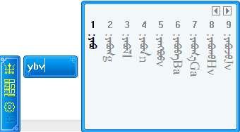 输入字母后候选框中显示的黑体词是和输入码所匹配的蒙古文词,而灰色词是部分匹配词。用户可依据灰色词下面的输入码提示继续输入,最多显示随后的三个字母,其中大写字母是下一个音节首字母,用户可直接输入大写字母快速录入下一个音节,例如用户要继续录入yabvba时,在ybv基础上直接输b,即可。