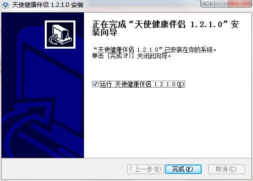 6.点击完成,天使健康伴侣软件安装成功