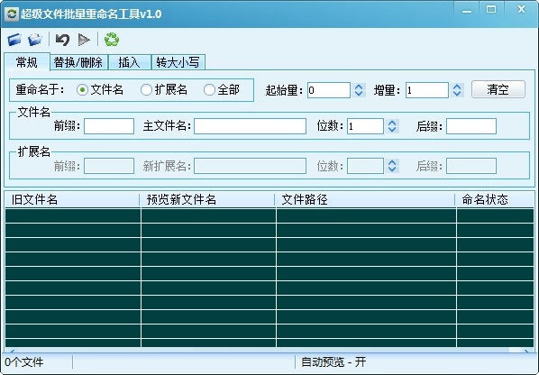 超级文件批量重命名工具官方版是一款拥有个性化配置、非常便捷易用的文件更名软件,超级文件批量重命名工具最新版支持对文件及文件夹批量改名。超级文件批量重命名工具支持智能过滤,支持对文件夹批量改名,支持批量插入文字、插入序号、替换字符、文件名转大小写等,插入位置可随意控制。还能批量修改扩展名,使用简单,非常容易上手。