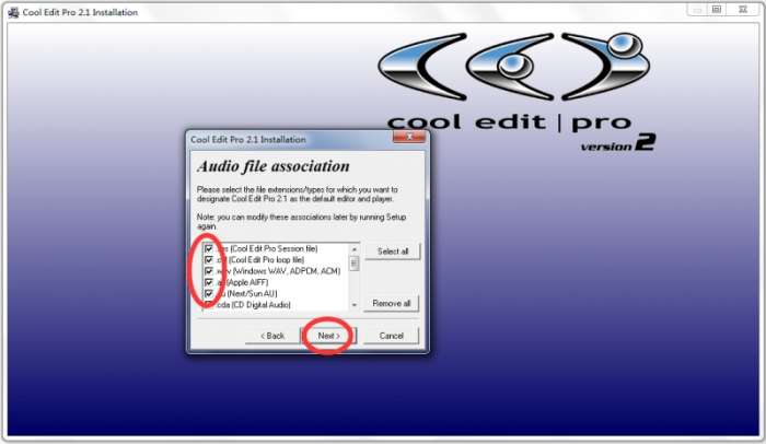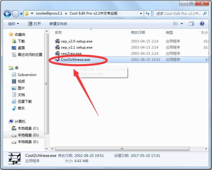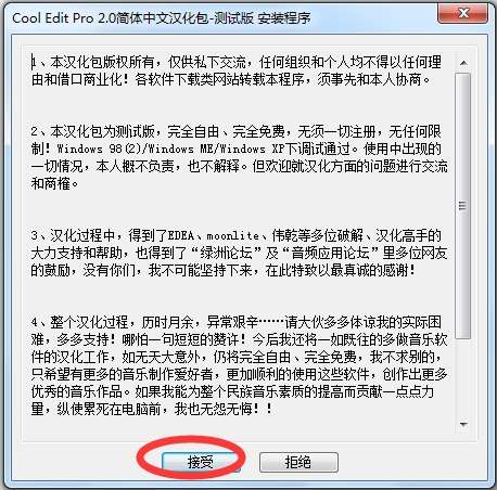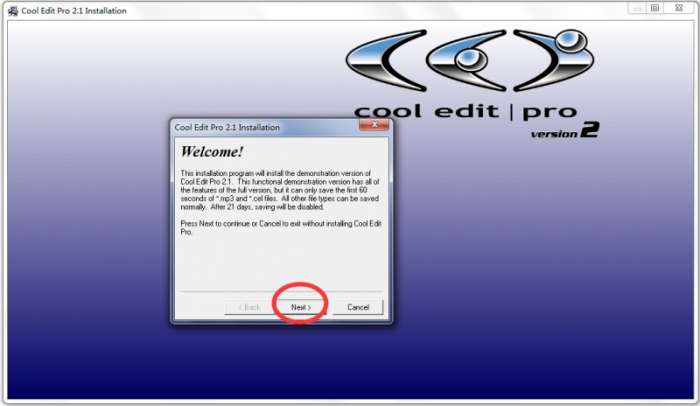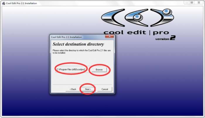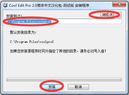 4.安装cool edit pro v2.1 简体中文版的汉化包也是常规步骤,自定义安装地址,很快就安装好了。