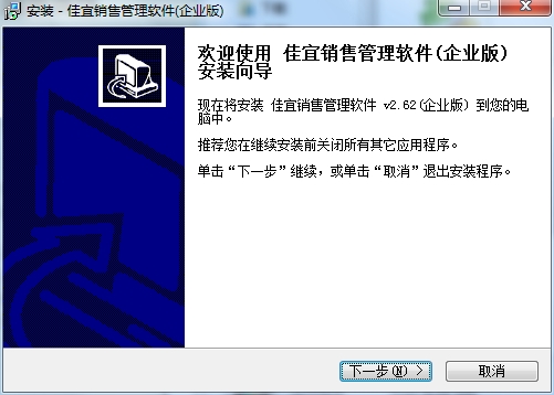 1、在PC下载网下载佳宜销售管理软件企业版压缩包,然后进行解压,解压后,双击exe程序,进入安装界面,然后点击下一步
