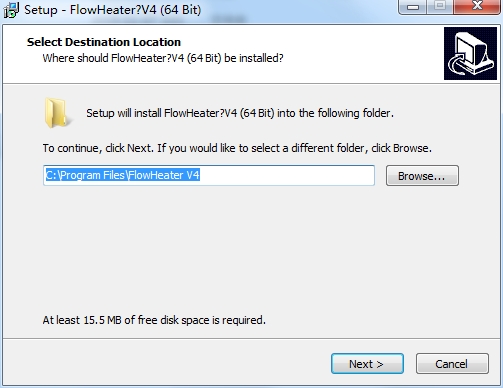 2、设置软件的安装地址,这里可以显示C:Program Files (x86)FlowHeater V4;