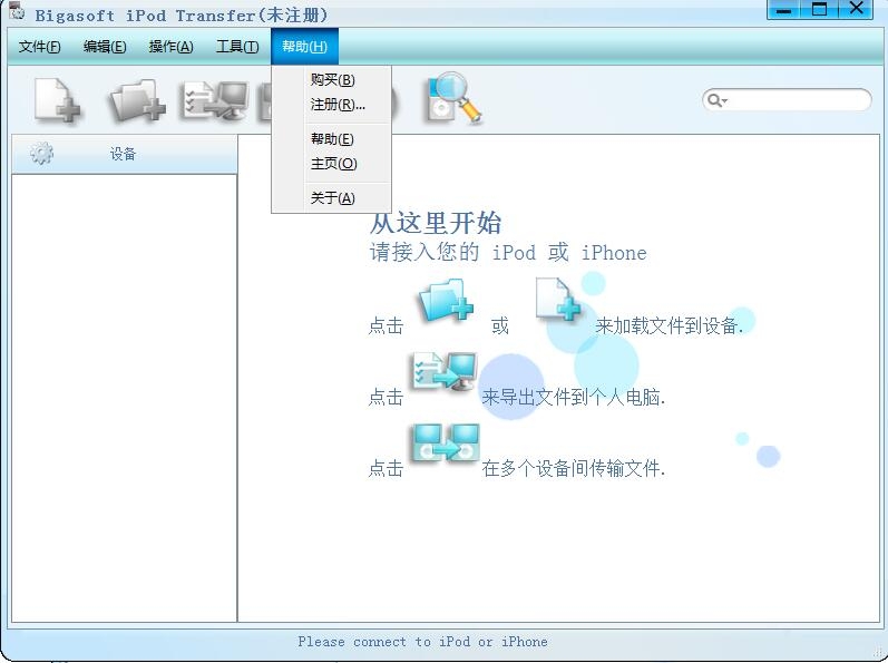 8、有帮助,点击帮助查看Bigasoft iPod Transfer的介绍