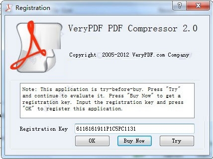 6、在PDF Compressor注册框中输入下面的注册码