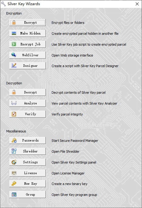 Silver Key加密敏感数据并创建可以安全地通过互联网发送的加密包裹,不需要在接收端安装任何软件。
