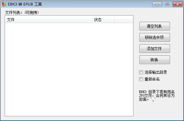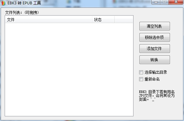 EBK3转EPUB工具官方版是一款界面简洁,功能强劲的转换工具,EBK3转EPUB工具官方版使用起来轻松流畅,可以帮助大家轻松快捷的将EBK3文件转换成epub文件,但是需要注意的是EBK3转EPUB工具最新版的压缩比不高,大家可以使用sigil重新编辑,或使用压缩工具重新压缩。