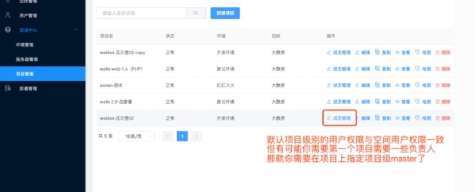 2.空间管理。意味着有独立的空间资源:环境管理、用户组、项目、服务器等