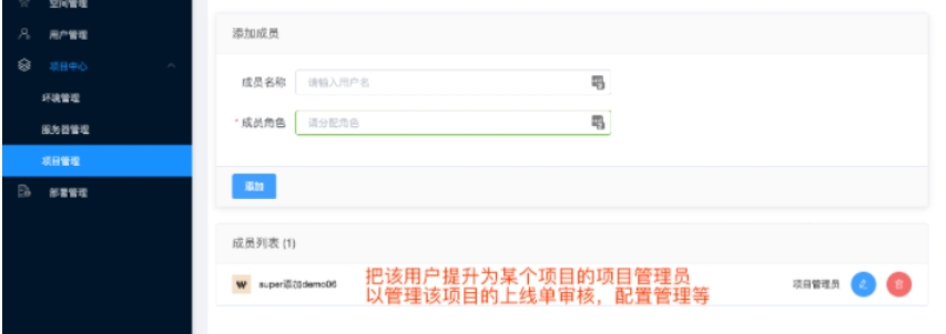 6、可以设置管理员,把该用户提升为某个项目的项目管理员以管理该项目的上线单审核,配置管理等