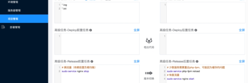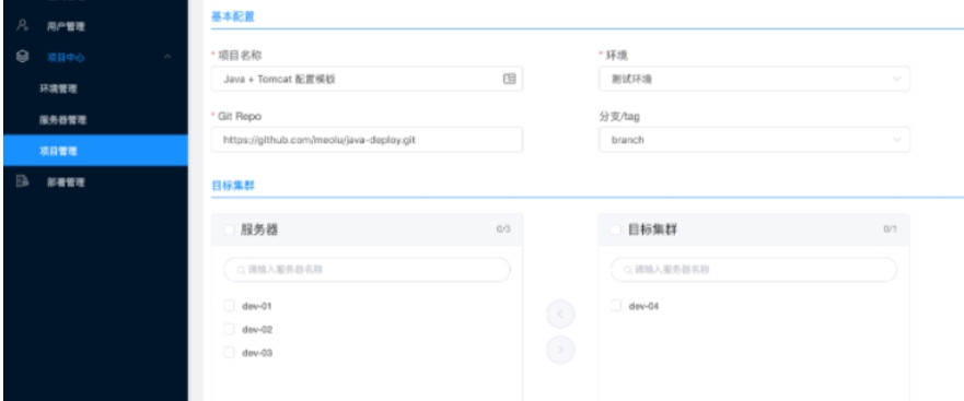 支持多项目、多环境一键部署上线,一键快速回滚。
