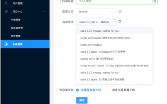 13、提示部署上线功能,可以参考下图的内容,可以选择Walle自部署,可以选择多服务器上线