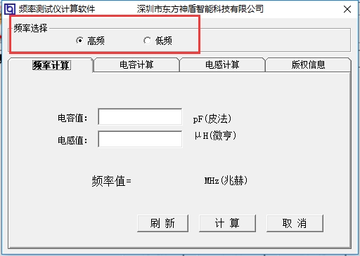 频率测试仪计算软件官方版支持高频、低频两种频率的计算。
