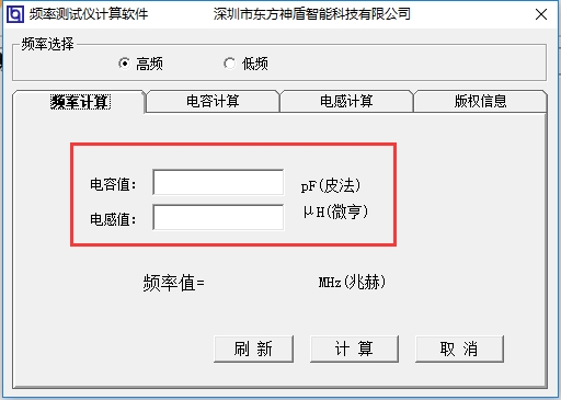 频率测试仪计算软件最新版支持频率计算、电容计算、电感计算三种计算功能。