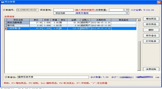 吧台销售:主要用来管理客人到本店或通过电话订餐,进行增加订餐信息。