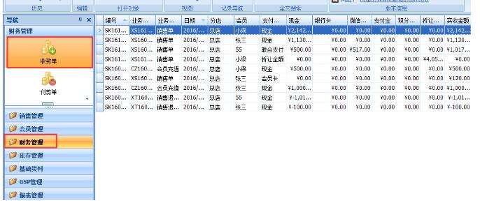 财务管理,可以将您商品的财务报表输出到Excel中保存,这里显示的总店信息、会员充值、销售退订单、支付信息