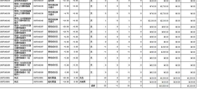 镜片销售汇总报表: 查询各类镜片的不同度数销售情况。