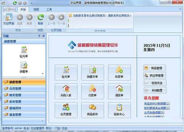 蓝格眼镜店销售管理软件软件功能