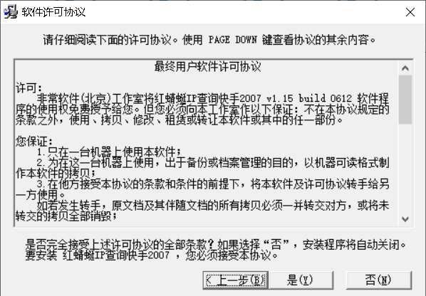 1、在PC下载网下载红蜻蜓IP查询快手最新版压缩包,然后进行解压,解压之后得到exe程序,双击该程序,点击下一步