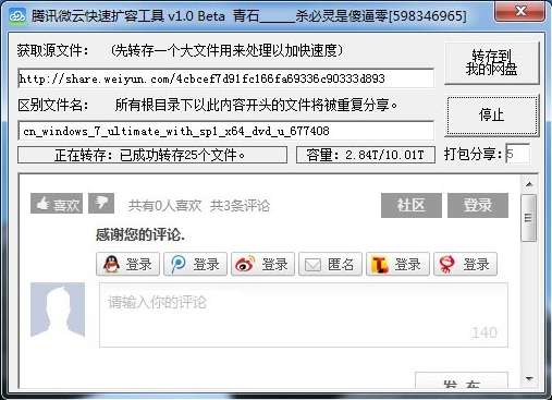 这个《腾讯微云快速扩容工具》可以代替你的双手(省纸…),自动替你转存文件。