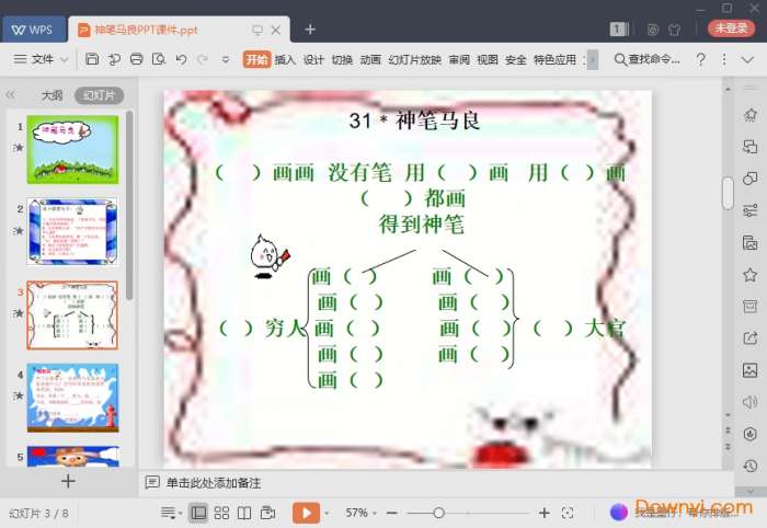 神笔马良课件为你提供了一个预习使用的ppt,让学生们在使用的时候可以更加放心的使用。ppt图文并茂的提供了一些内容。如果你需要欢迎来体验!