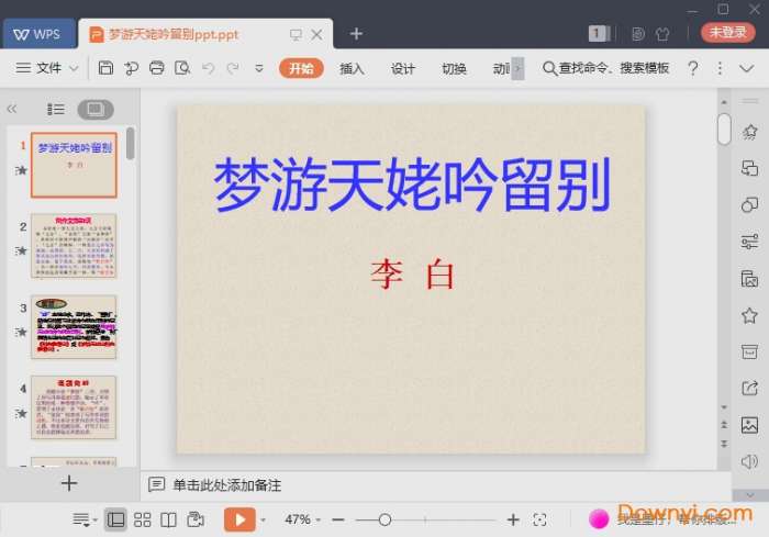 梦游天姥吟留别ppt课件为同学们准备的课件可以更好的学习这篇课文,让你赞在学习的时候可以更加方便的来完成。软件使用简单方笔,如果你喜欢这款软件那就来体验!