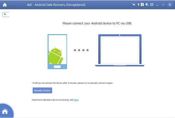 1、下载并安装AnyMP4 Android数据恢复后,只需通过USB电缆将Android手机连接到计算机。运行该软件,它将自动检测连接的设备,然后您将看到以下界面。