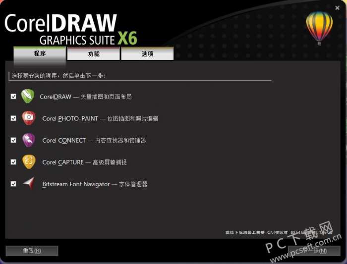 * 保留的程序组件:CorelDRAW X6、Corel PHOTO-PAINT X6、双面打印向导、其他导入/导出过滤器;