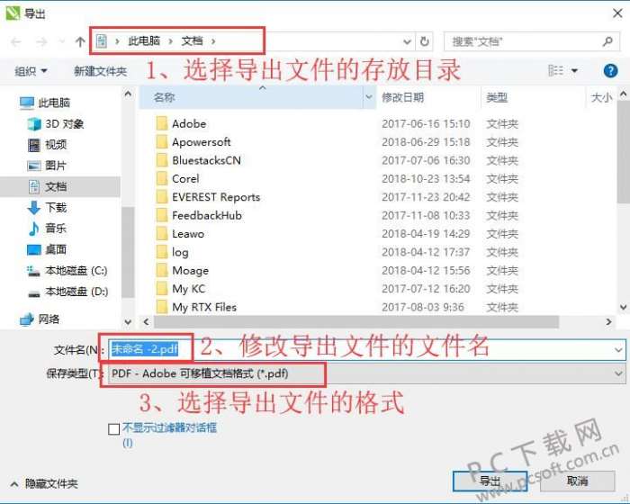 2、先选择导出后的图片文件存放目录,然后修改导出文件的文件名,再选择导出的文件格式,确认无误后,点击“导出”