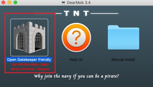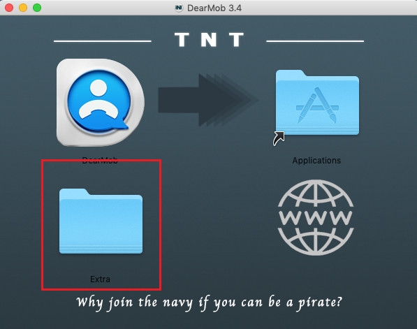 3、先将“DearMob”拖入右边的“Application”图标完成安装,然后在打开红框内的文件夹