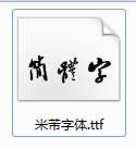 1、在华军软件园将个性米芾字体下载下来,并解压到当前文件夹中,可以看见米芾字体.ttf。