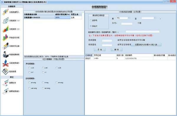 6、可预设相关学生到指定班级(可隐藏预设班级列) 相同或相似读音的学生自动分配到不同的班级