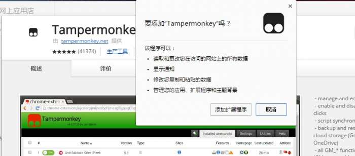 2.如果chrome应用商店可以打开的话,可以按照在线安装的方式安装Tampermonkey插件。