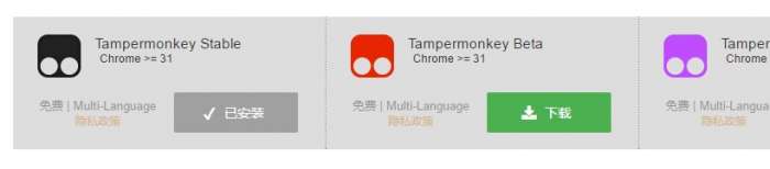 4.我们知道tampermonkey目前有三个版本,TampermonkeyStable,TampermonkeyBeta,TampermonkeyLegacy.最常用的就是TampermonkeyStable。