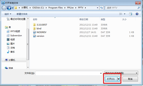 1.在PPTV网络电视主界面菜单中打开“设置—文件关联”,勾选“全部媒体文件格式”点击“确定”后,双击本地视频节目即可直接观看