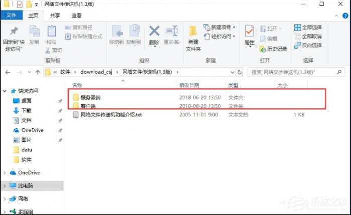 3、双击打开解压得到的文件夹获得客户端和服务器端两个文件。