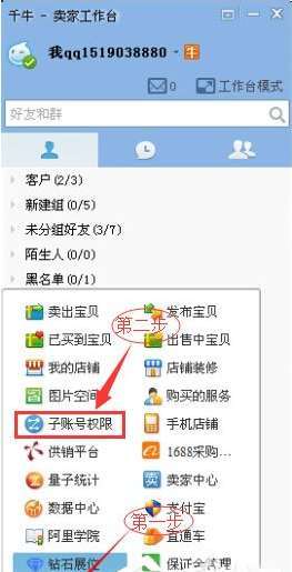 主账号登陆子账号后台—员工管理—补充权限,授权使用千牛插件。