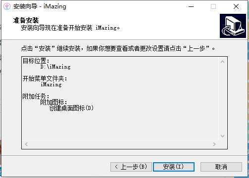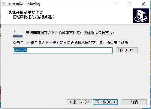 3、选择imazing快捷方式存放位置,选择完成后点击【下一步】。