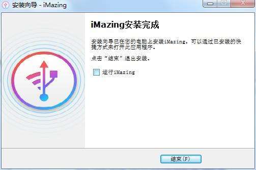 7、imazing安装完成,取消勾选【运行imazing】,点击【完成】退出软件安装。