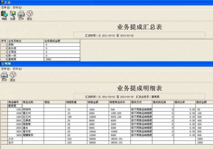10、自动生成业务提成、业务考核、业务提成排行表、销售按客户或商品或业务员汇总表及排行表,为营销决策提供强有力的参考;