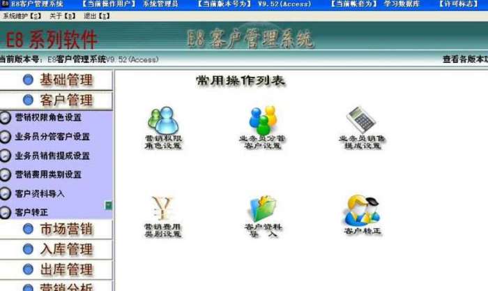 E8客户管理软件官方版是一款十分专业、非常值得的客户管理工具,E8客户管理软件官方版拥有先进的CRM营销理念设计。E8客户管理软件最新版集客户档案、销售记录、业务往来、业务提成自动计算、邮件群(发)、营销费用记录、客户反馈记录等多种功能的软件。