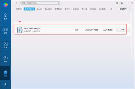 方法二:安装并打开360软件管家,在卸载选项的列表中找到OBS经典版,点击卸载即可