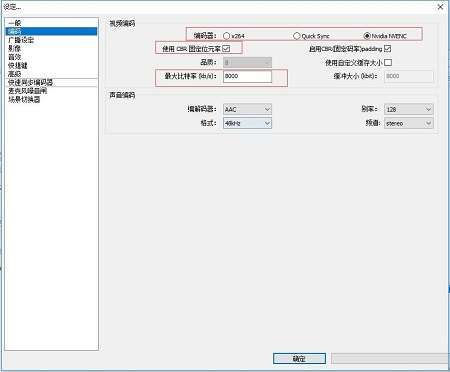 (编码器:当你显卡为nvidia中高端显卡,同时也是intel的cpu,且是笔记本时。三个均能勾选。台式机只能选择x264和nvidia nvenc,至于选哪个,要根据实际来选择。