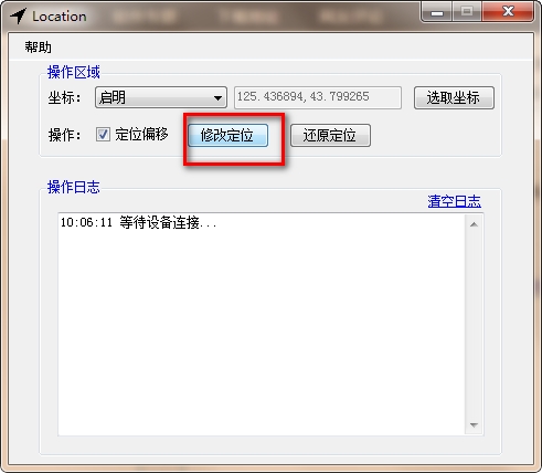1、打开Location官方版软件,连接手机,系统显示已经连接成功显示系统标识。