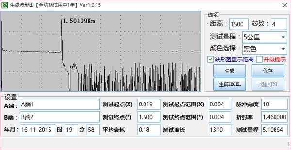 1、OTDR曲线图生成工具功能丰富,根据软件的界面输入需要测试的距离
