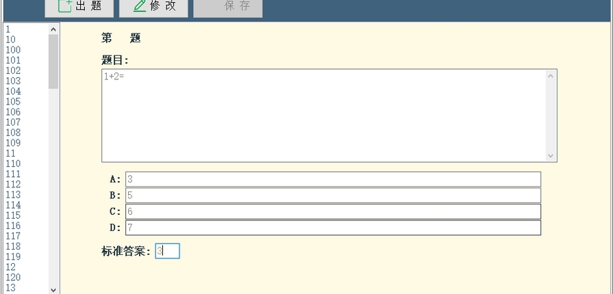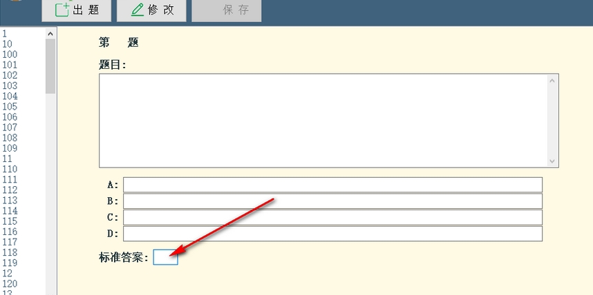 3、出题界面如图所示,将题目内容输入到软件,将四个答案选项填写